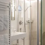 מייבש שיער, וילונות אמבטיה ומגבות כלולים בחדר האמבטיה.